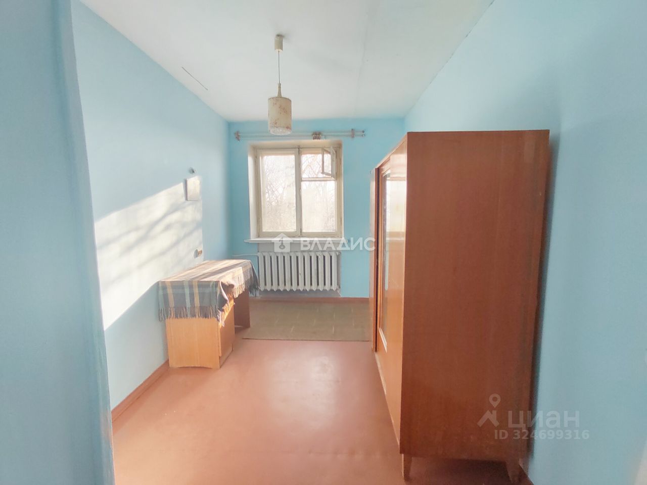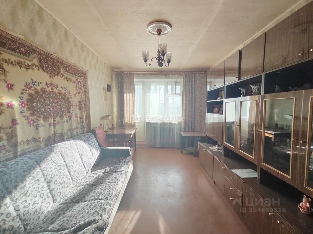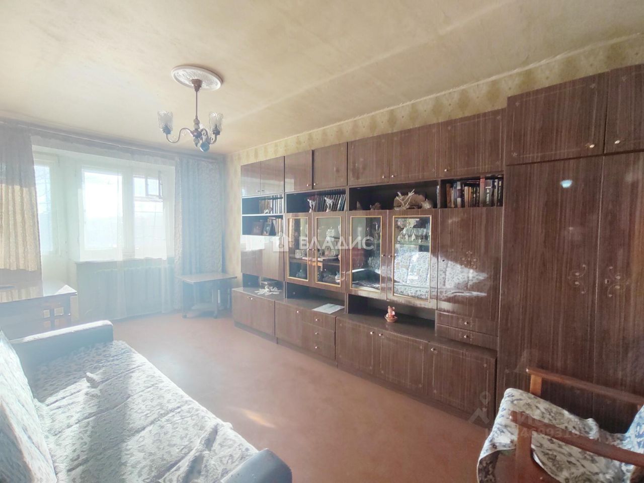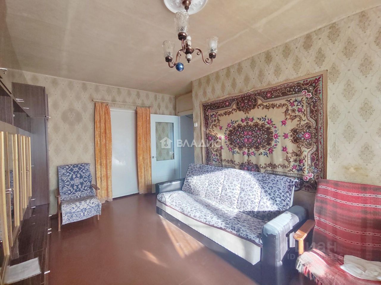 Квартира, светлая, не угловая, очень теплая, площадью 59,7 кв.м., требует ремонта, комнаты смежно-изолированные (распашонка, есть возможность изолировать комнату и сделать гардеробную) площадью 41 кв.м., окна деревянные, кухня 6 кв.м., с.