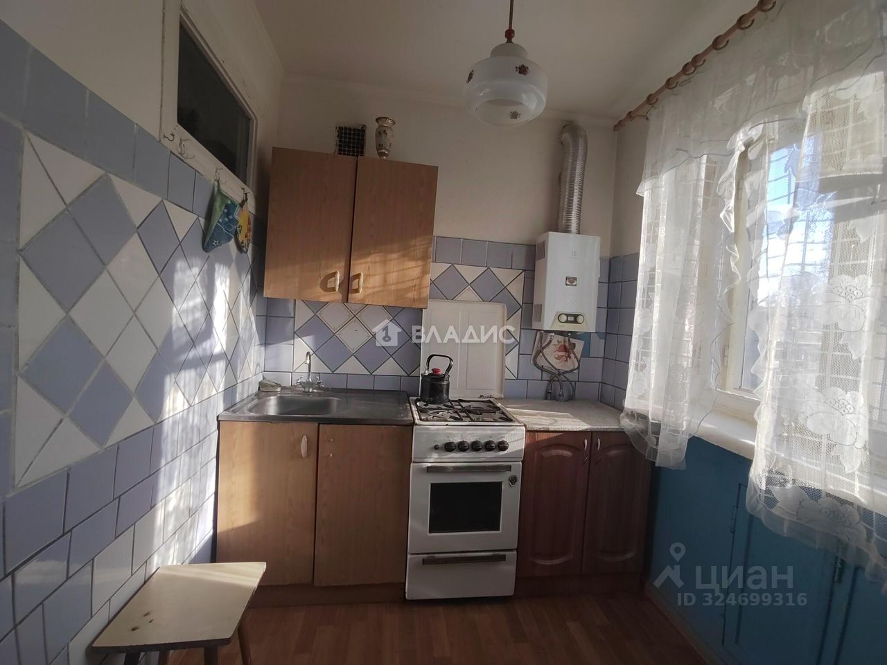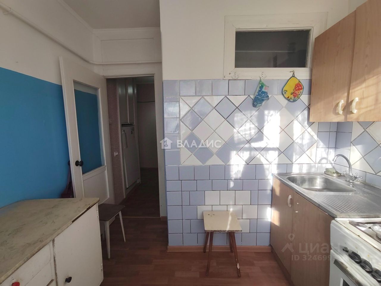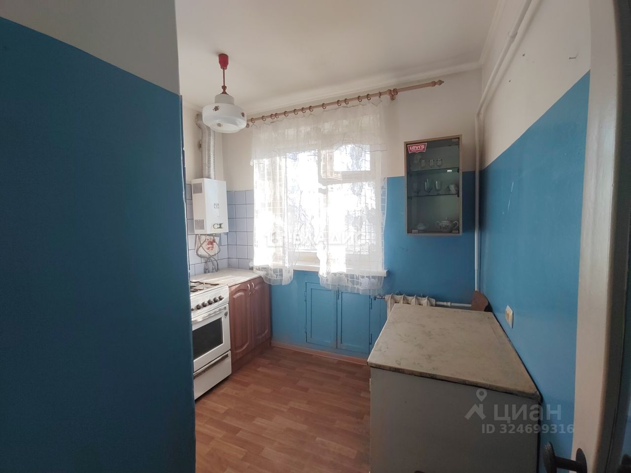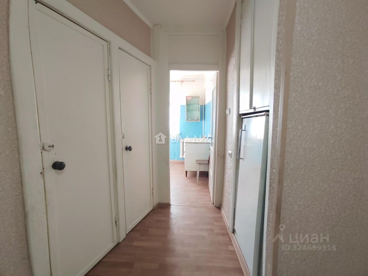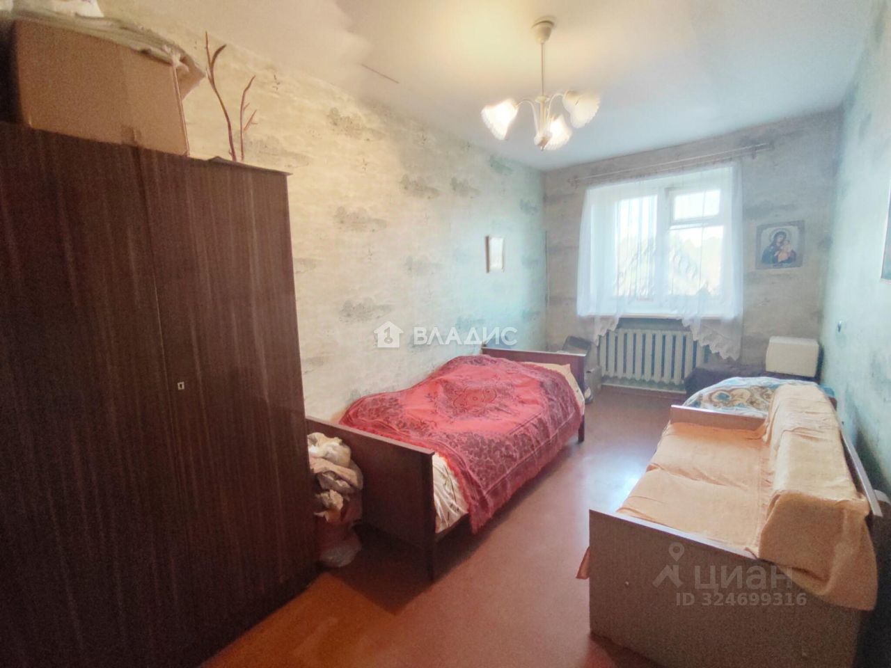 Квартира, светлая, не угловая, очень теплая, площадью 59,7 кв.м., требует ремонта, комнаты смежно-изолированные (распашонка, есть возможность изолировать комнату и сделать гардеробную) площадью 41 кв.м., окна деревянные, кухня 6 кв.м., с.